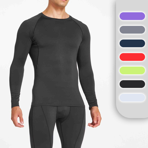 制造商时尚健身运动服男士长袖压缩衬衫基层跑步健身房运动紧身衣